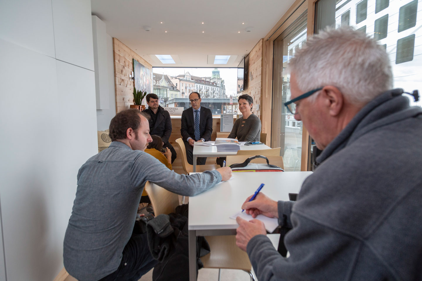 Zahlreiche Privatpersonen, Fachleute, Firmen und Schulklassen besichtigten diesen einzigartigen Wohn- oder Bürocontainer, der das Wohlbefinden und die Regeneratiun des Menschen ins Zentrum rückte. Insagesamt liessen sich weit über 1000 Personen von der erzeugten Raum-, Licht- und Luftqualität inspirieren. Sie erlebten, wie zukünftiges Wohnen und Arbeiten aussehen könnte.